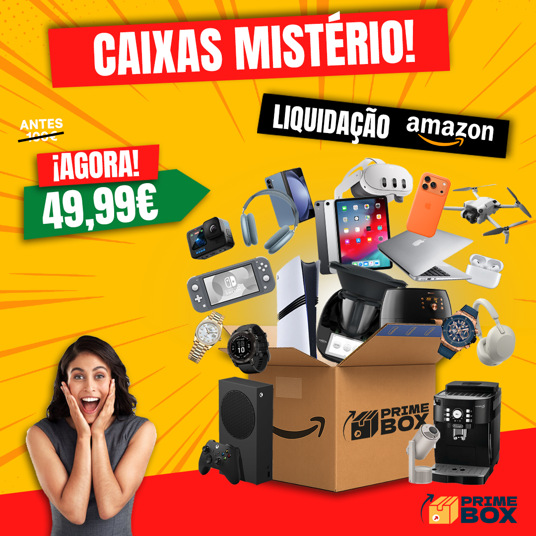 - Caixa Mistério de Produtos de Alta Gama: Entre 3 e 5 produtos com um valor superior a 100 € — por apenas 49,99 €!